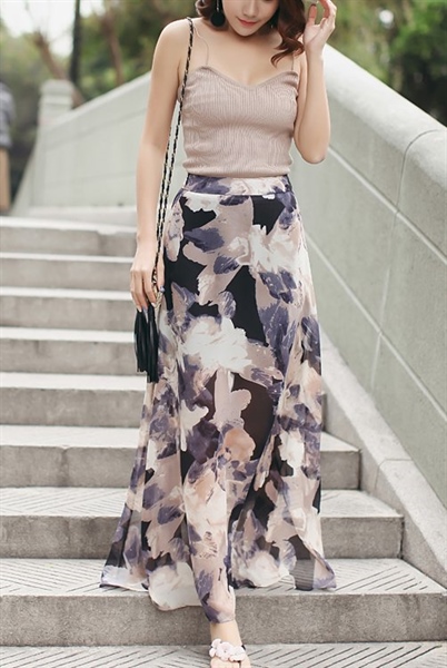 CHÂN VÁY HỌA TIẾT DÁNG DÀI HAI LỚP