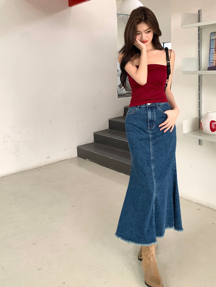 Chân váy jean đuôi cá xẻ sau