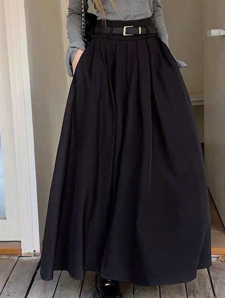 CHÂN VÁY XẾP LY DÁNG DÀI KÈM BELT