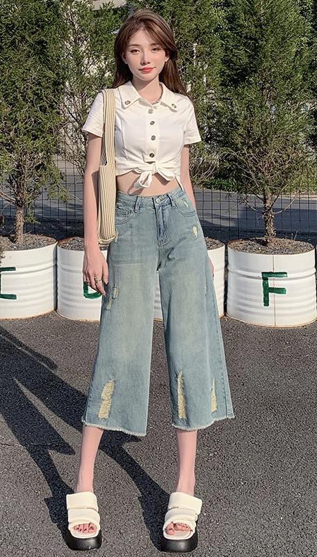 QUẦN JEAN 9 TẤC ỐNG RỘNG RÁCH LAI